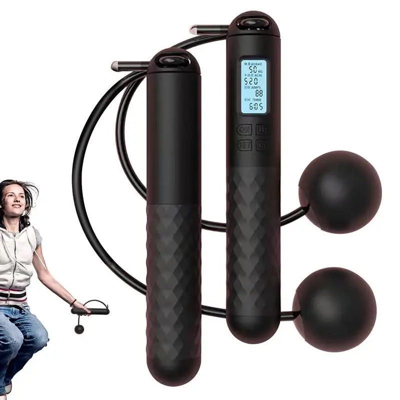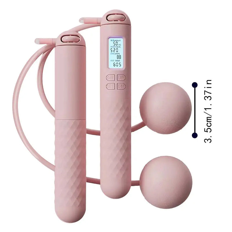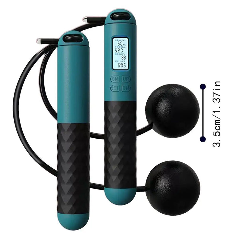 Nosso design sem fio e com pesos removíveis simula a resistência do giro, mas libera você para pular em qualquer cantinho. O LCD retroiluminado exibe saltos, tempo e calorias (com base no seu peso), facilitando metas de treinamento progressivo. Cabos em TPU e esferas de 3,5 cm absorvem impacto sem ruído — ideal para uso indoor. O cabo antiderrapante ergonômico garante pegada firme mesmo com suor.Por que é eficaz?