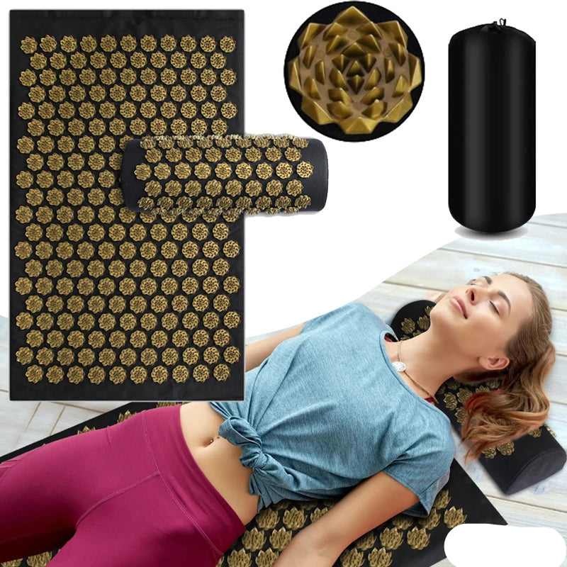• Dois tamanhos de tapete + travesseiro: área corporal (65 × 41 cm) para costas, plus size (125 × 41 cm) para atletas ou ioga total, e almofada curvada (37 × 14 cm) para pescoço e lombar.