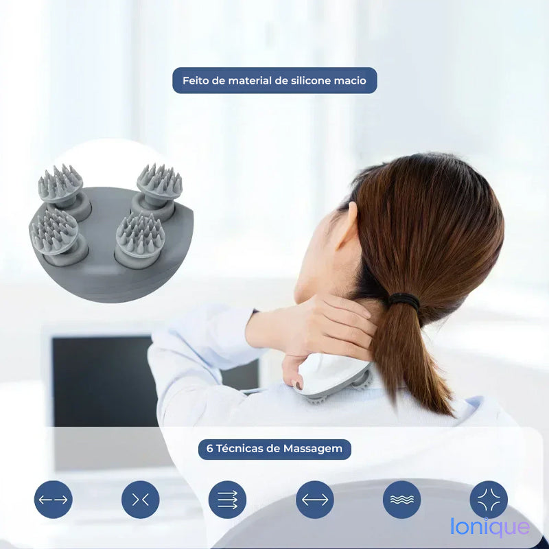 Este massageador reúne relaxamento neuromuscular, fototerapia e praticidade sem fio num único gadget — solução completa para quem busca aliviar stress, melhorar circulação e cuidar do couro cabeludo em qualquer lugar.