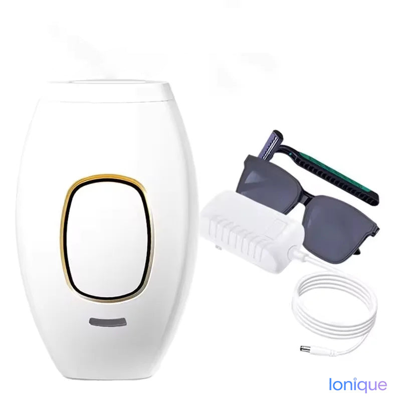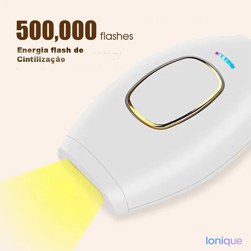 Tecnologia IPL (Luz Pulsada Intensa): 500 000 flashes de alta eficiência que atingem o folículo para inibir o crescimento do pelo desde a raiz.